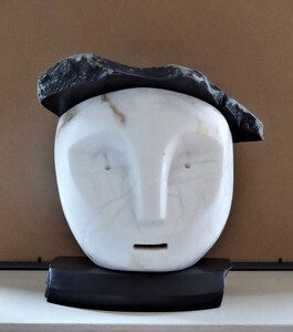 2020Masker van witte albast, gecombineerd met zwarte speksteen.