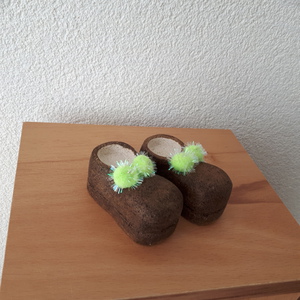 2024schoentjes uit kalksteen in bruine was met groene dotjes